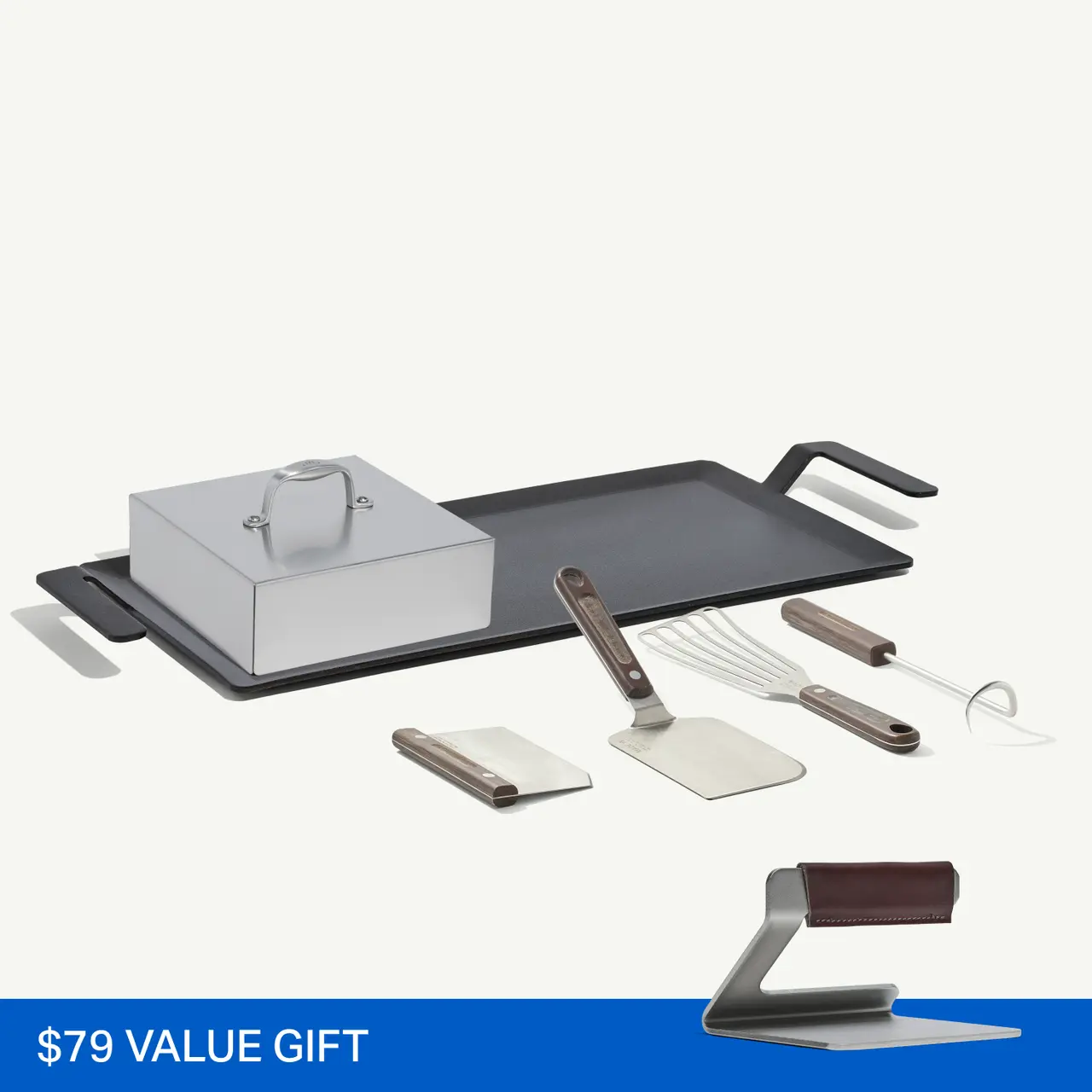 Receive a free Stainless Steel Grill Press with your purchase of the Carbon Steel Griddle Set. While supplies last.