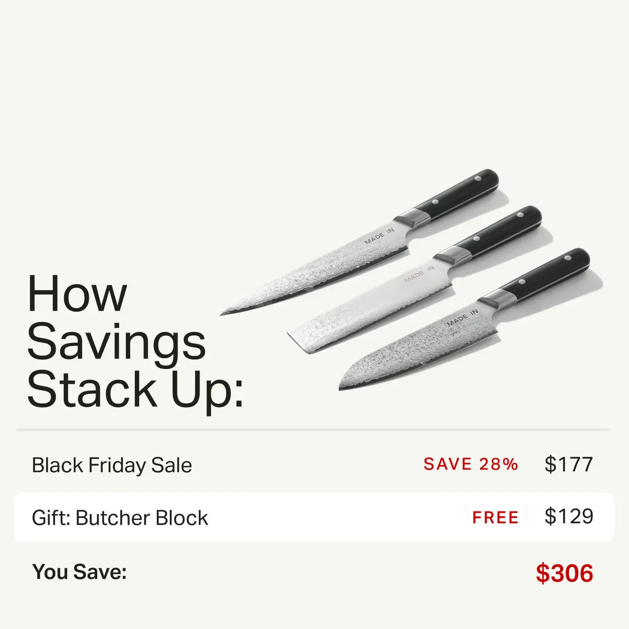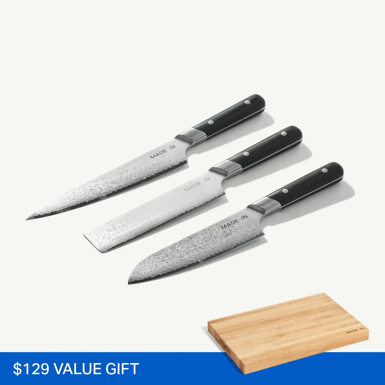 Receive a free Butcher Block Cutting Board with your purchase of the Knife Set, while supplies last.