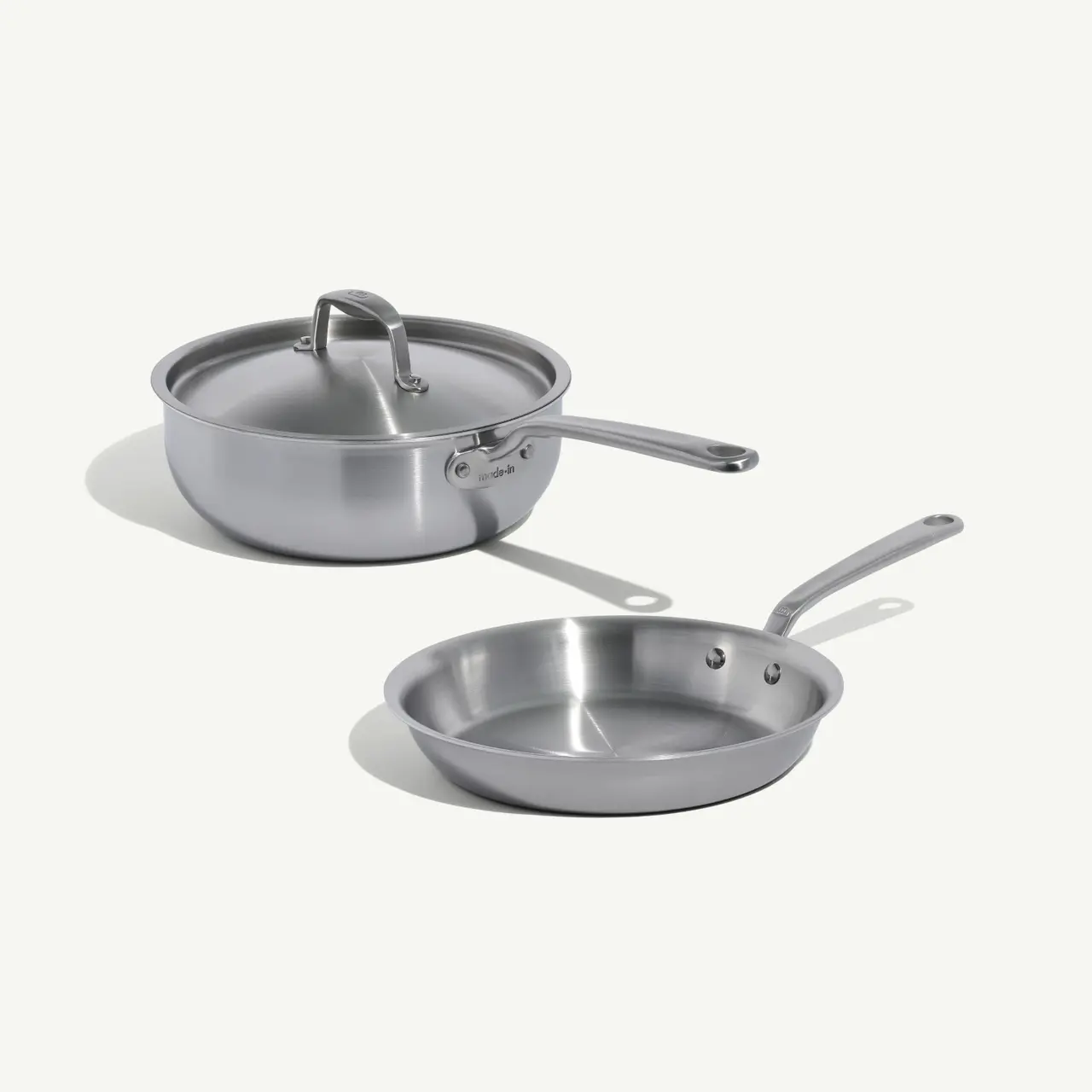 A chef-approved duo of our best-selling Stainless Clad shapes, the classic Frying Pan and Saucier.